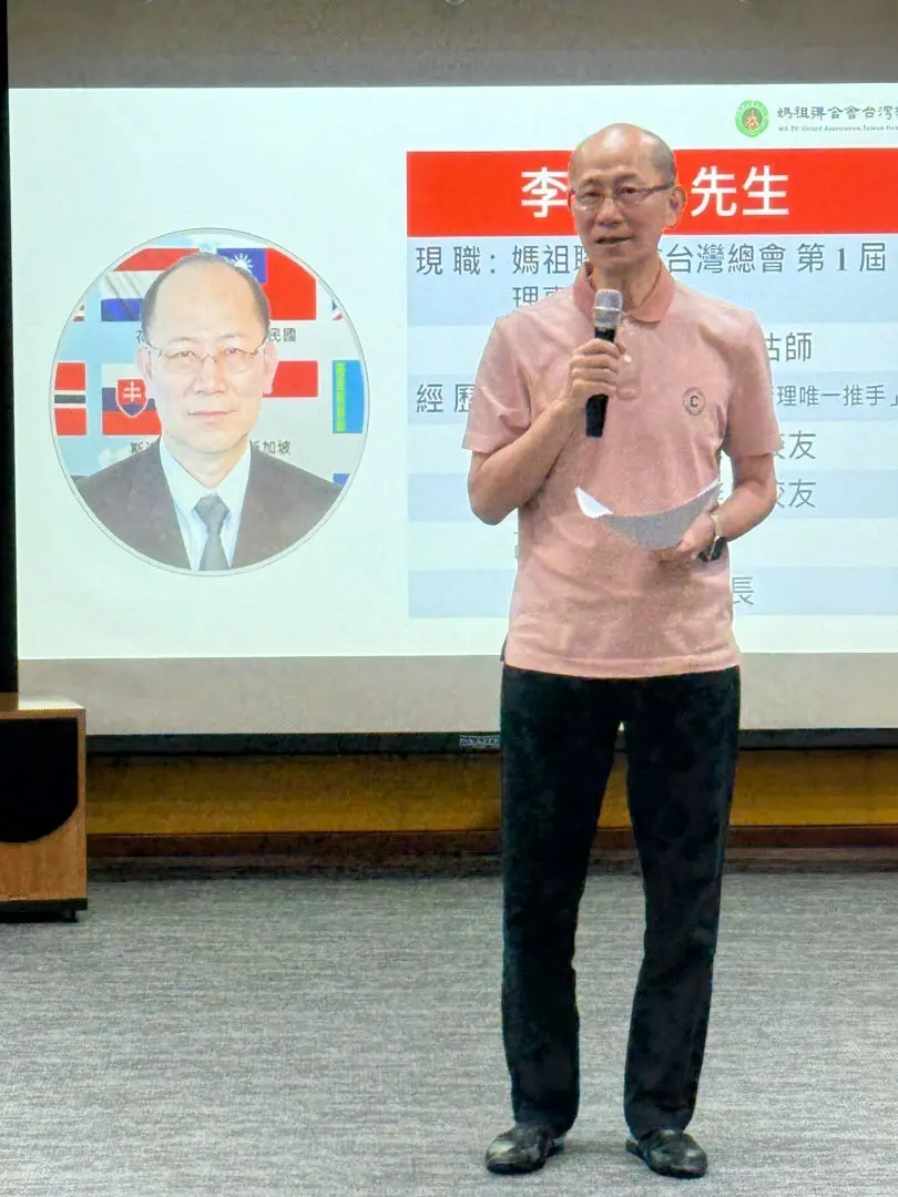 媽祖聯合會台灣總會李仟萬理事長表示,這場是社會關懷講座系列第四場,今年前三場先後邀請易學大師劉君祖分享「網訊時代的經營智慧易經述要」;龍華科大文化創意與數位媒體設計系兼校友服務中心王健明主任主講「自媒體故事與分鏡」;高雄市張瑞璋中醫診所負責人張瑞璋以「國學中的中醫養生」為題,探討糖尿病的中醫預防養生法。