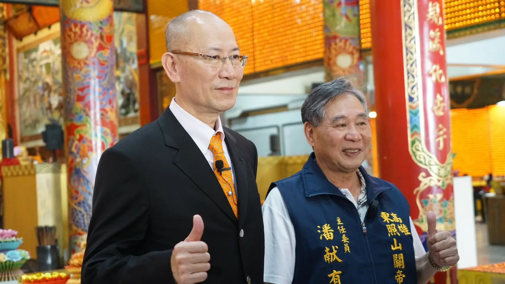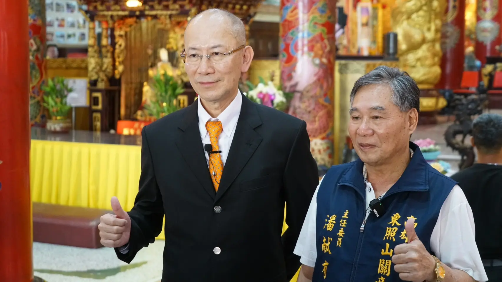 媽祖聯合會台灣總會李仟萬理事長(左)與東照山關帝廟潘献有主委(右)