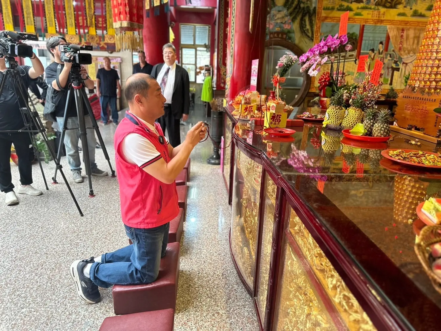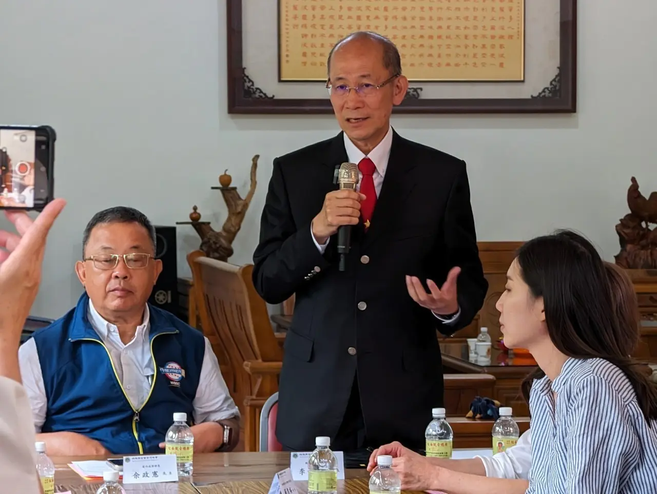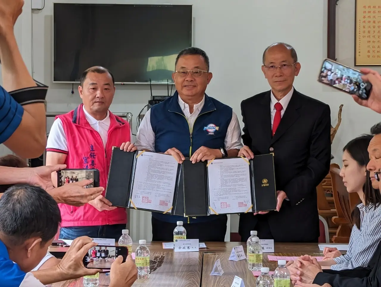 媽祖聯合會台灣總會李仟萬理事長十一日率團隊前往高雄內門紅面觀音總廟,在前內政部長余政憲見證下,與宜清富主委簽訂策略聯盟,雙方未來共同弘揚優秀宗教文化,並結合當地宋江陣和總舖師辦桌文化,齊心為內門地方繁榮有所貢獻。