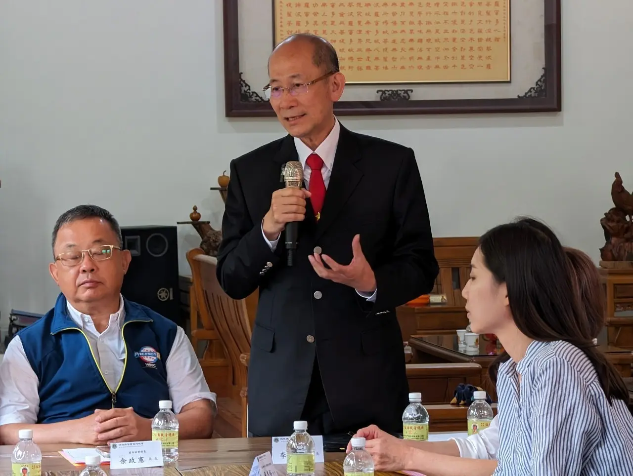 余政憲表示,媽祖聯合會台灣總會李仟萬理事長身兼台灣專業管理學會理事長,學會已深耕台灣二十年,教授群數百位,專業人才濟濟,而高雄內門紅面觀音總廟擁有全台第一尊紅面觀音佛祖,神威顯赫,香火鼎盛,雙方各領風騷,很高興能見證雙方攜手合作,共同為民間信仰深耕努力,造福大眾並帶動地方發展。