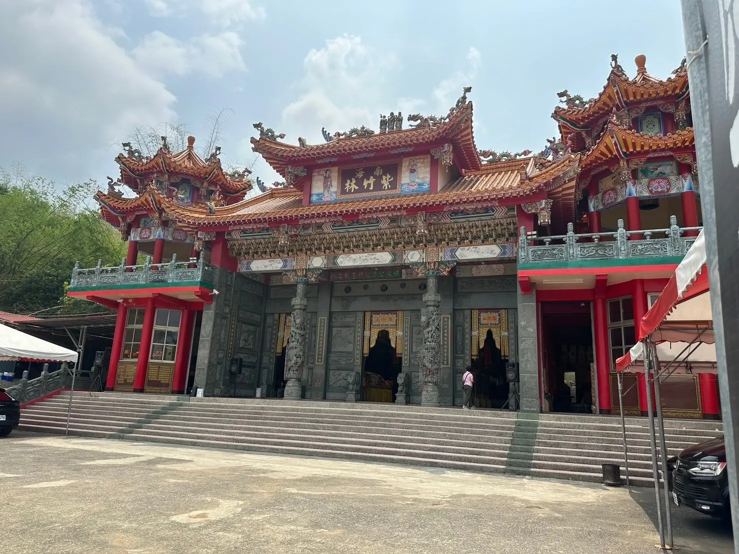 宜清富主委表示,該廟擁有300多年歷史,為全台第一間供奉紅面觀音的廟宇,廟後方三面竹林環繞,型成龍椅座,還有小橋流水、涼亭造景,吸引全台信眾參香祈福,還有200多年歷史的宋江陣,每年活動熱鬧非凡。