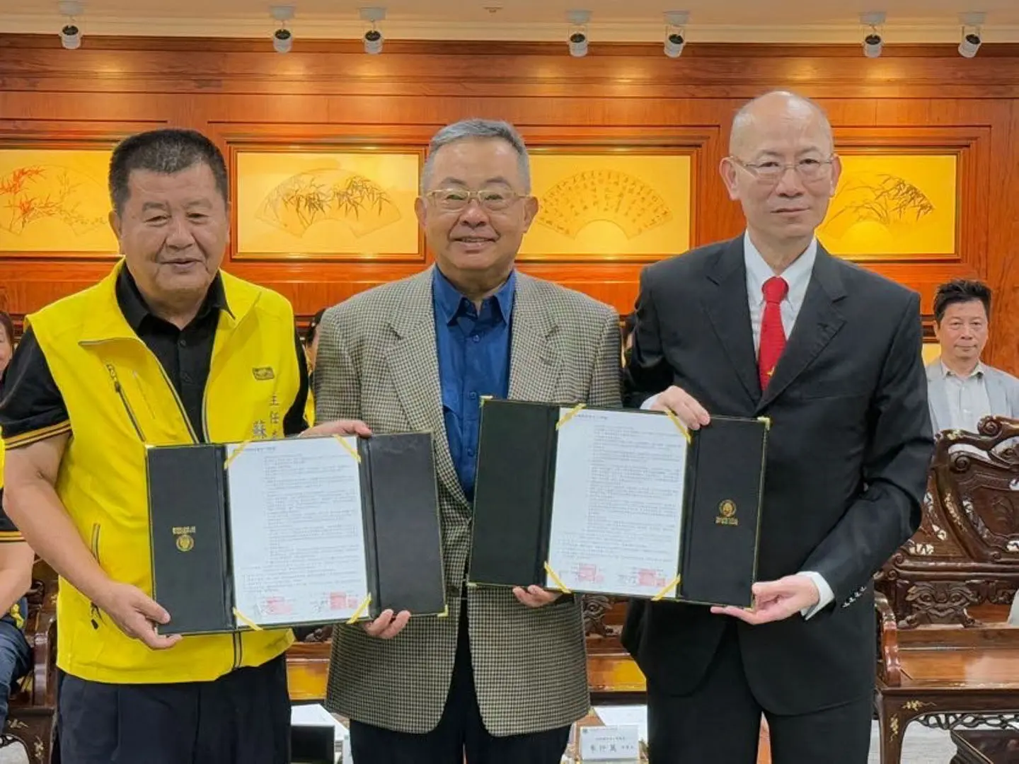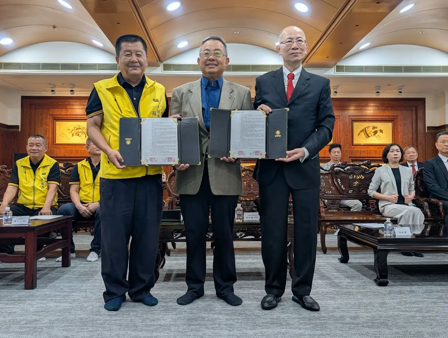 媽祖聯合會台灣總會與高雄市北野町溫王廟二十一日在民進黨宗教委員會總召集人 余政憲先生見證下簽訂策略聯盟。