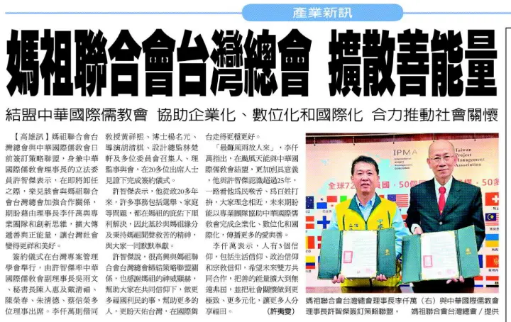 媽祖台灣總會攜手中華國際儒教總會策略聯盟 傳遞正能量