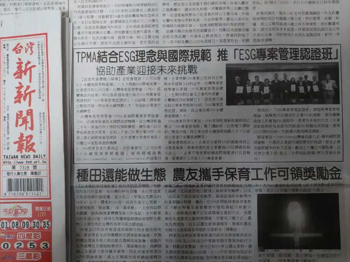 金管會發表「公司治理3.0-永續發展策略藍圖」,大力推動ESG環境保護、社會責任和公司自理,台灣專案管理學會(TPMA)為響應政府政策,將在春節過後推出結合ESG與專案管理課程的「ESG專案管理認證班」,目前種子講師群已整裝待發,將培育永續規劃人才,也協助企業進行永續轉型。